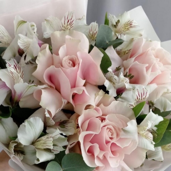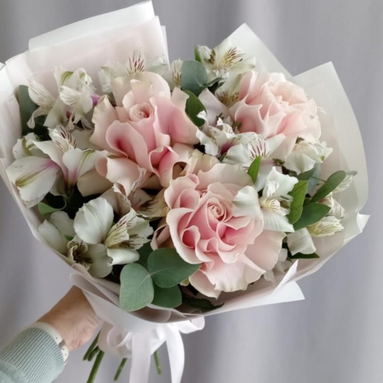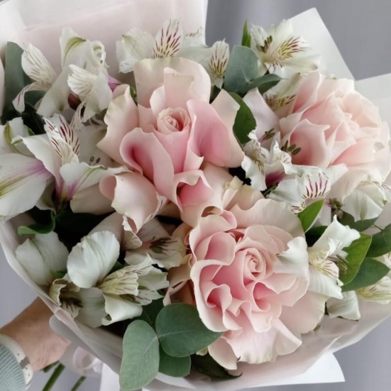 Букет из 3 французских роз и Альстромерии в Златоусте