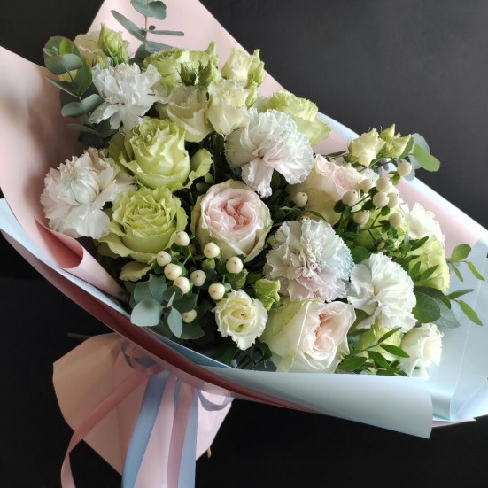 Организация и качество букет на 5 баллов! Соответствии компоновки тоже. Огромные молодцы. Сроки доставки - быстрые.